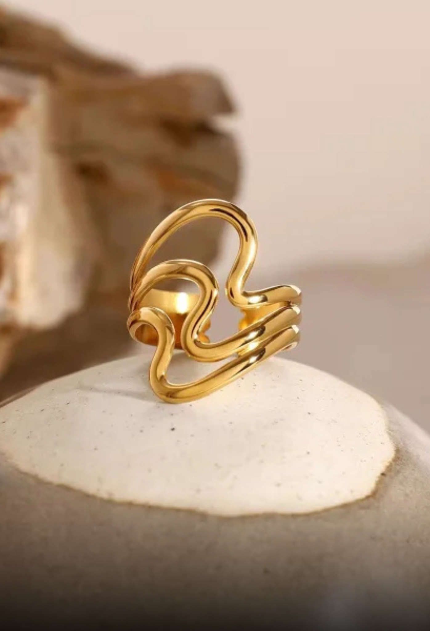 BOLD Crossover line design 18k Gold Plated Adjustable Ring